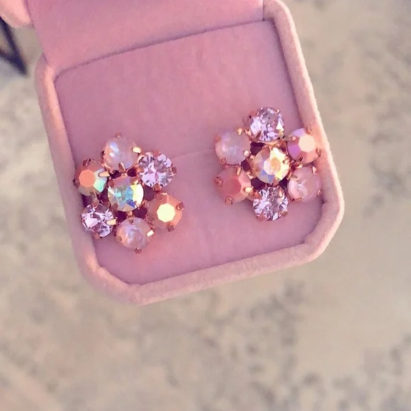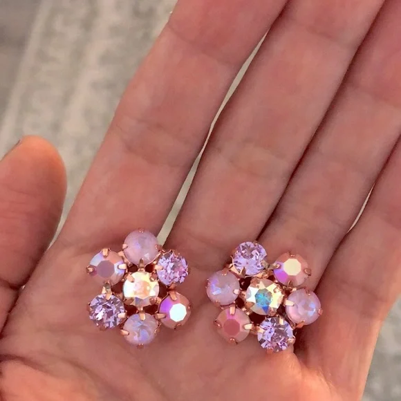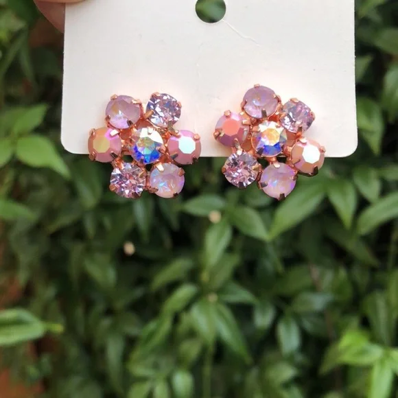 Brand new, stunning earrings artisan made with high quality Swarovski brand crystalsLovely vintage vibePics don't do these justice! Very sparkly + shiny shown in different lighting, matching ring available in our closet also!Beautiful colors pink+ purple with aurora borealis centersRose gold color settingsPost stud backs are at top of the flower, these will drop a little below the ear lobesapprox 6/8" in sizePerfect pop of color to any outfit, designed to be lighter and not tug at the ear lobesCan be made in different colorsWe have matching rings, bracelets, necklaces +a variety of crystal/statement jewelry in our closet, check out our other listings!Will come carefully packaged 🛍️birthstone j crew, express,banana republic,sorelli,bridesmaids,holidays Christmas,New Years Easter, birthday, graduation, wedding,anniversary,baby shower, bridal,engagement,dolls kill Betsey Johnson juicy couture lilly pulitzer, kate spade,valentines,love, date night, brunch, abling, sterling, antique,vintage silver,gold,copper, ose, princess,baguette,pear,cushion, square,navette coachella rivoli diamonds carat cubic cz rhinestones carnival swarovski crystal ring swarovski crystal bracelet,gemstones, precious, birth,stone, aura natural, quartz,sparkle statement jewelry iridescent,rainbow, pastel touchstone brilliance sorrelli zara quinceanera sweet sixteen mother's day,debutant,ball prom formal,homecoming,pageant,stage,costume,fashion,brighton liz palacios catherine popesco
